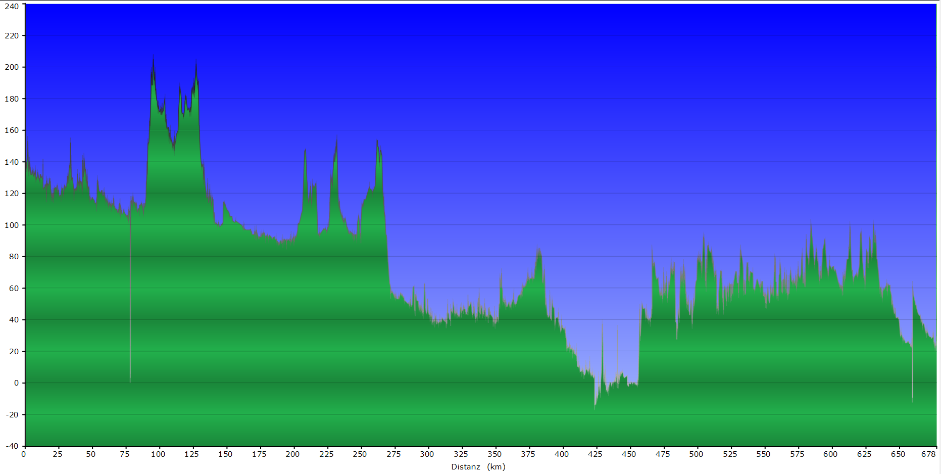 Es geht ein Stück an der Oder entlang. Dann radeln wir im großen Bogen nordwestlich. Der Track führt uns quer durch die Mecklenburgische Seenplatte nach Fürstenberg. In westlicher Richtung radeln wir dann nach Woodstock an der Dosse (Einheimische werden wohl Wittstock anmerken..). Dann wird es ganz beschaulich. Einige Radwege werden auf Sand- und Kopfsteinpflasterwegen geführt. Der Endpunkt ist wieder an der Elbe, und zwar Wittenberge. Gerd legt noch einen drauf, und fährt noch nach Stendal.