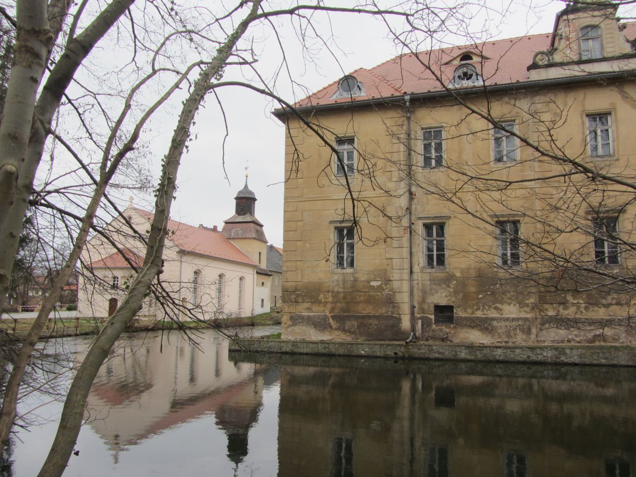 In Bärisdorf treffen wir auf ein Wasserschloss, das noch auf bessere Zeiten wartet, aber einige Nebengebäude sind schon saniert.