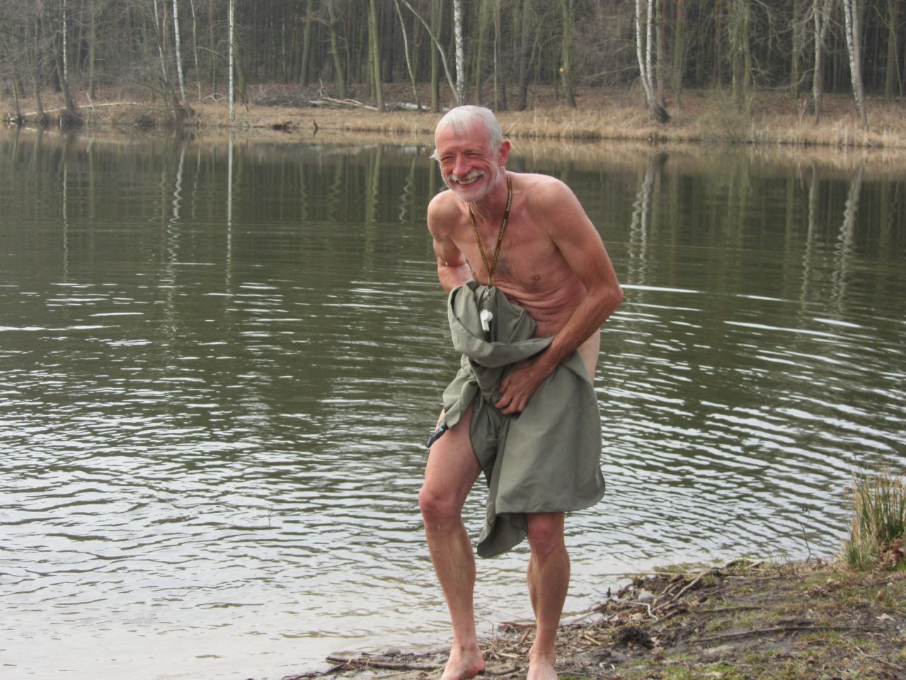 Gerd hat vorgelegt und Rainer nimmt die Herausforderung an und landet auch im Wasser. Klaus findet beim ersten Mal nicht den Kameraauslöser und ich muss noch mal reinspringen.