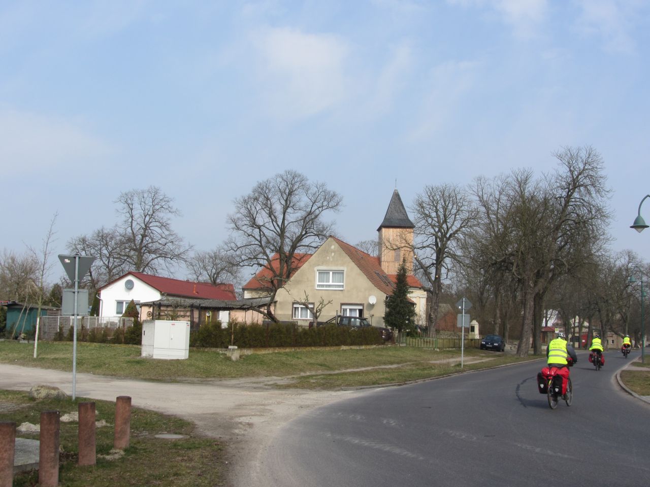 Es ist ein schöner, sonniger Morgen, Gerd überzeugt uns, gleich die kurze Hose anzuziehen. Wir fahren entlang des Westufers des Mellensees. In Saalow fahren wir durch eine Datschen-Siedlung, die noch viel aus der DDR Vergangenheit zeigt.