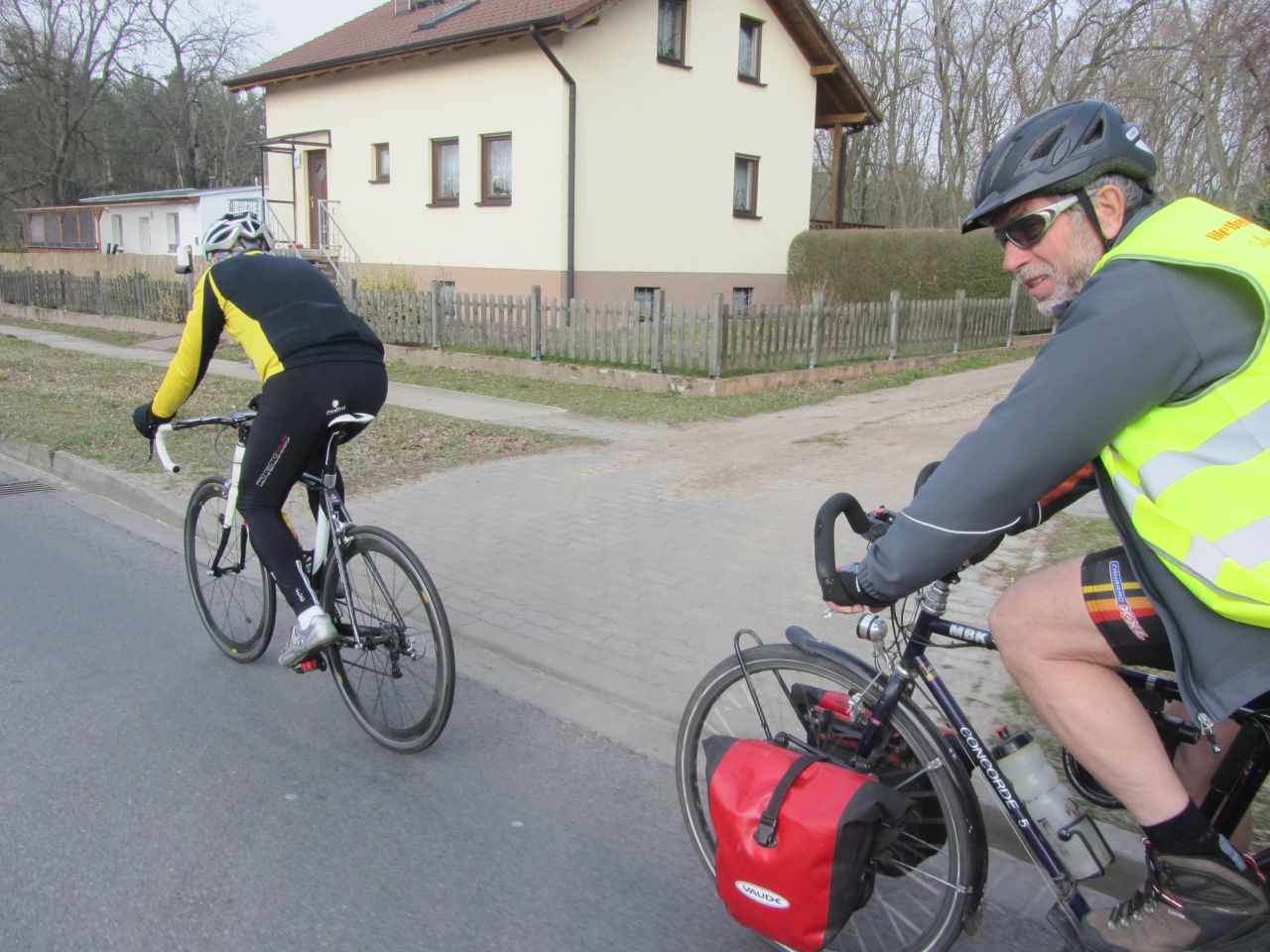 Bei Genshagen treffen wir (Heinz und Rainer) auf einen Rennradfahrer, wir bleiben erst im Windschatten und übernehmen dann die Führung. Irgendwann gibt es dann auf und ist verschwunden.