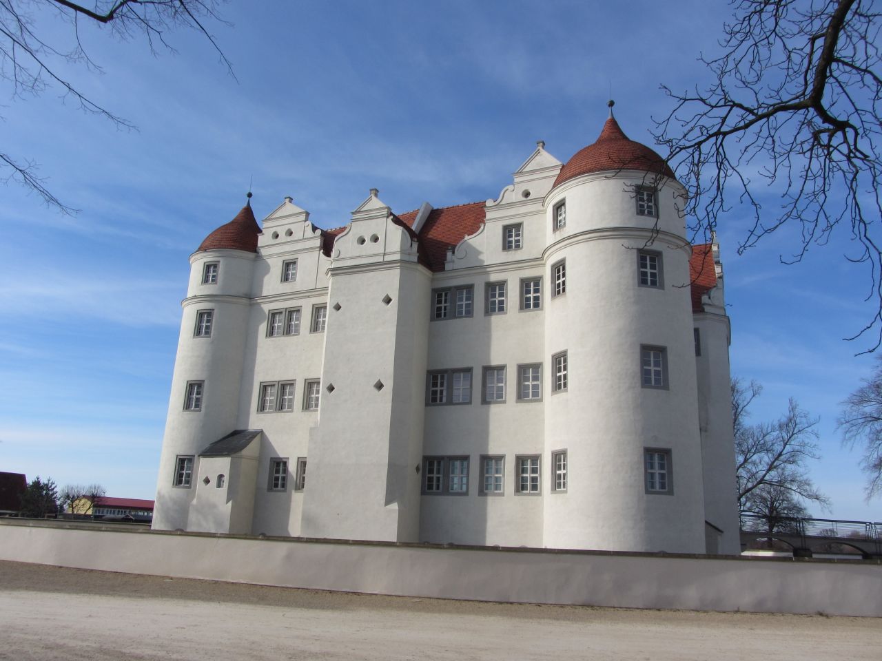 Dann ganz unvermittelt treffen wir in Grosskmehlen auf ein Wasserschloss, mitten in der Pampa. Der Innenausbau schein noch zu fehlen. Mittlerweile sind wir in Brandenburg angelangt. Wir sind im Gebiet der Lausitz und des oberen Spreewaldes. Auffällig sind hier die Entwässerungsgräben in dem ebenen Land. Riesig große Felder breiten sich hier aus.