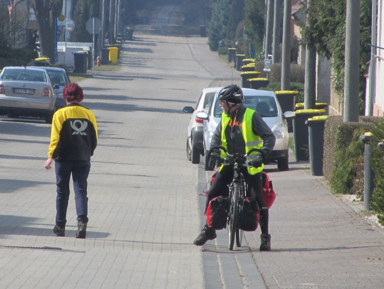 Gegen 9:00 Uhr packen wir die Räder; und wie man sieht es ist schon recht sonnig. Wir fahren wieder zur schwarzen Elster und fahren zumeist auf dem Deichradweg den Fluss hinunter.