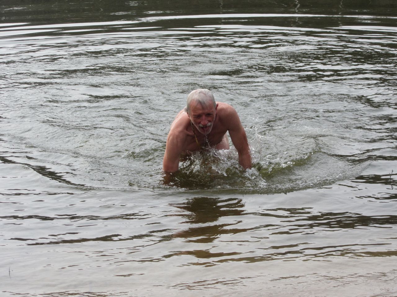 Gerd hat vorgelegt und Rainer nimmt die Herausforderung an und landet auch im Wasser. Klaus findet beim ersten Mal nicht den Kameraauslöser und ich muss noch mal reinspringen.