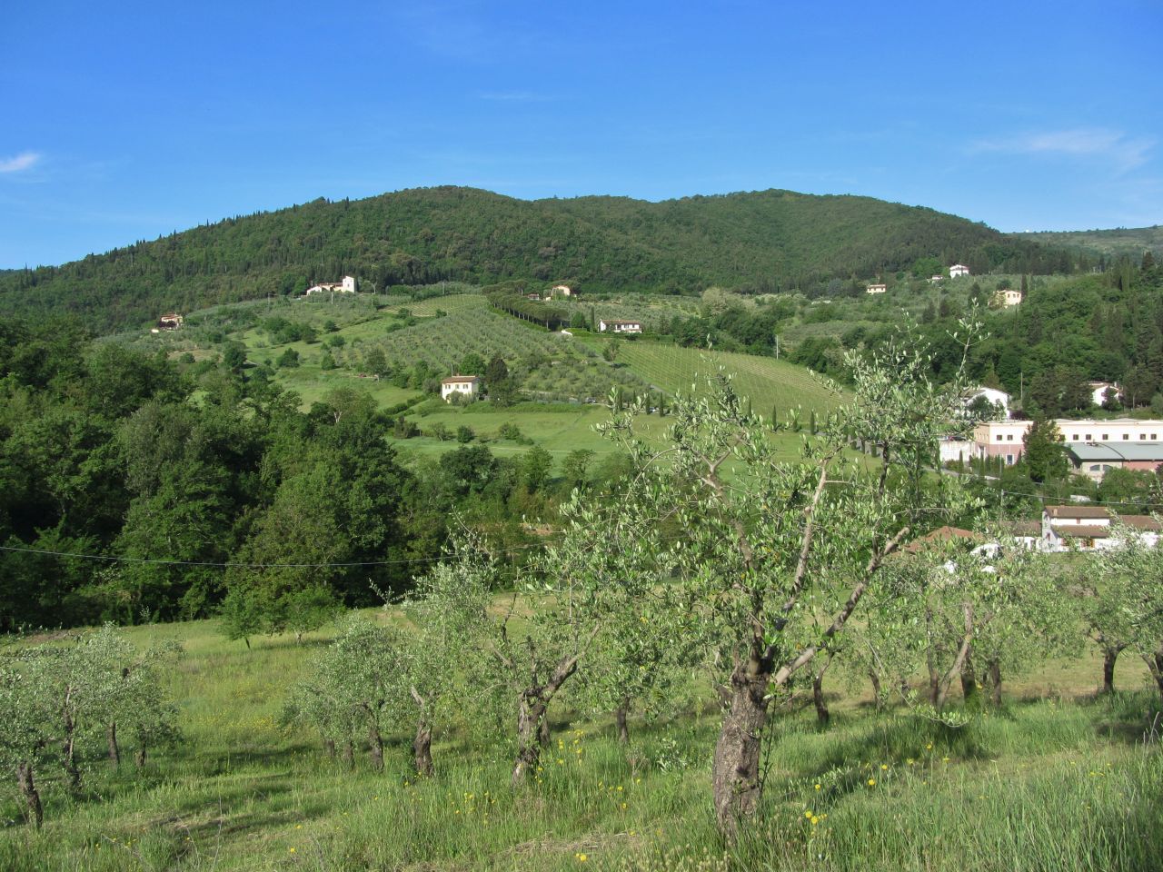 In Pontassieve verlassen wir die Uferstraße und wir fahren in die Berge. Es geht dann schon recht heftig bergan; mit unseren 45 kg schweren Rädern kommt die erste Herausforderung auf uns zu. Die Landschaft wechselt zwischen Wäldern, Olivenhainen und Weinbergen ab. Jedenfalls haben wir den starken Verkehr hinter uns gelassen.