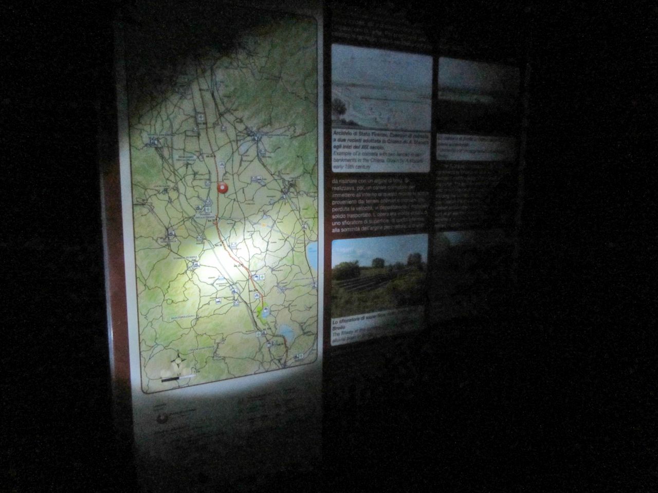 Wir biegen auf die SR 454 ab. Wir haben uns an das ebene Terrain gewöhnt; aber jetzt geht es auchn noch bergauf. Zum Glück sieht man nachts nicht die Steigung und man nimmt die geringere Geschwindigkeit beim Anstieg nicht so wahr. Psychologisch ist es einfacher nachts eine Steigung zu nehmen. Wir fahren durch Pozzuolo und dann geht es bergab nach Castiglione del Lago. Wir erreichen gegen 1:00 Uhr den Lago Trasimeno. Schließlich finden wir auch den Campingplatz aber keinen Zugang. Wir umrunden den Bereich ein paar Mal bis wir die unverschlossene Tür neben der Zufahrt entdecken.