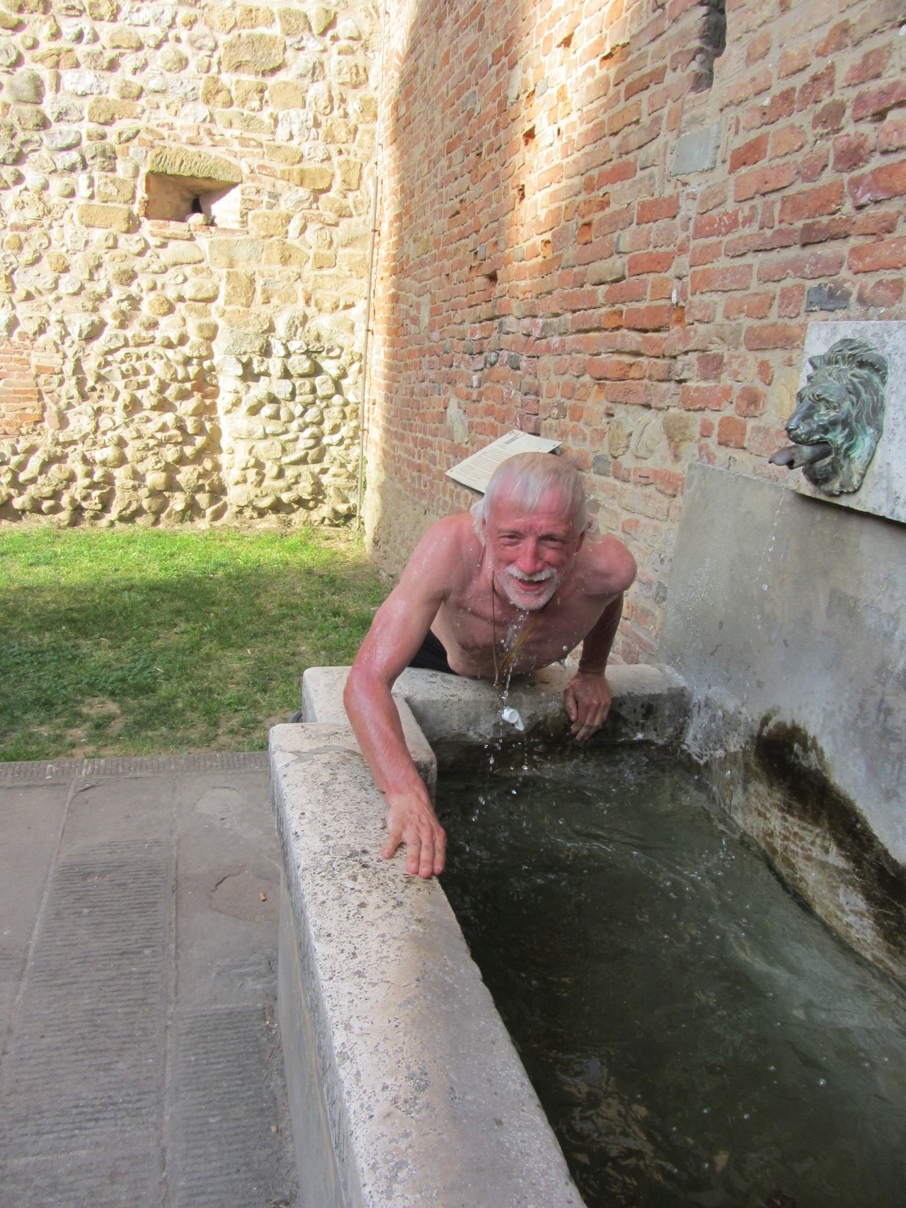 Nach der nächtlichen Ankunft wird uns erst am nächsten Tag gewahr, wie es überhaupt hier am Lage Transimeno aussieht. Wir blicken von dem Campingplatz auf einen großen See, der von Bergen umgeben ist. Wir stehen spät auf, wir sind ja spät in den Schlafsack gekommen. Wir baden natürlich, das Wasser hat eine angenehme Temperatur.