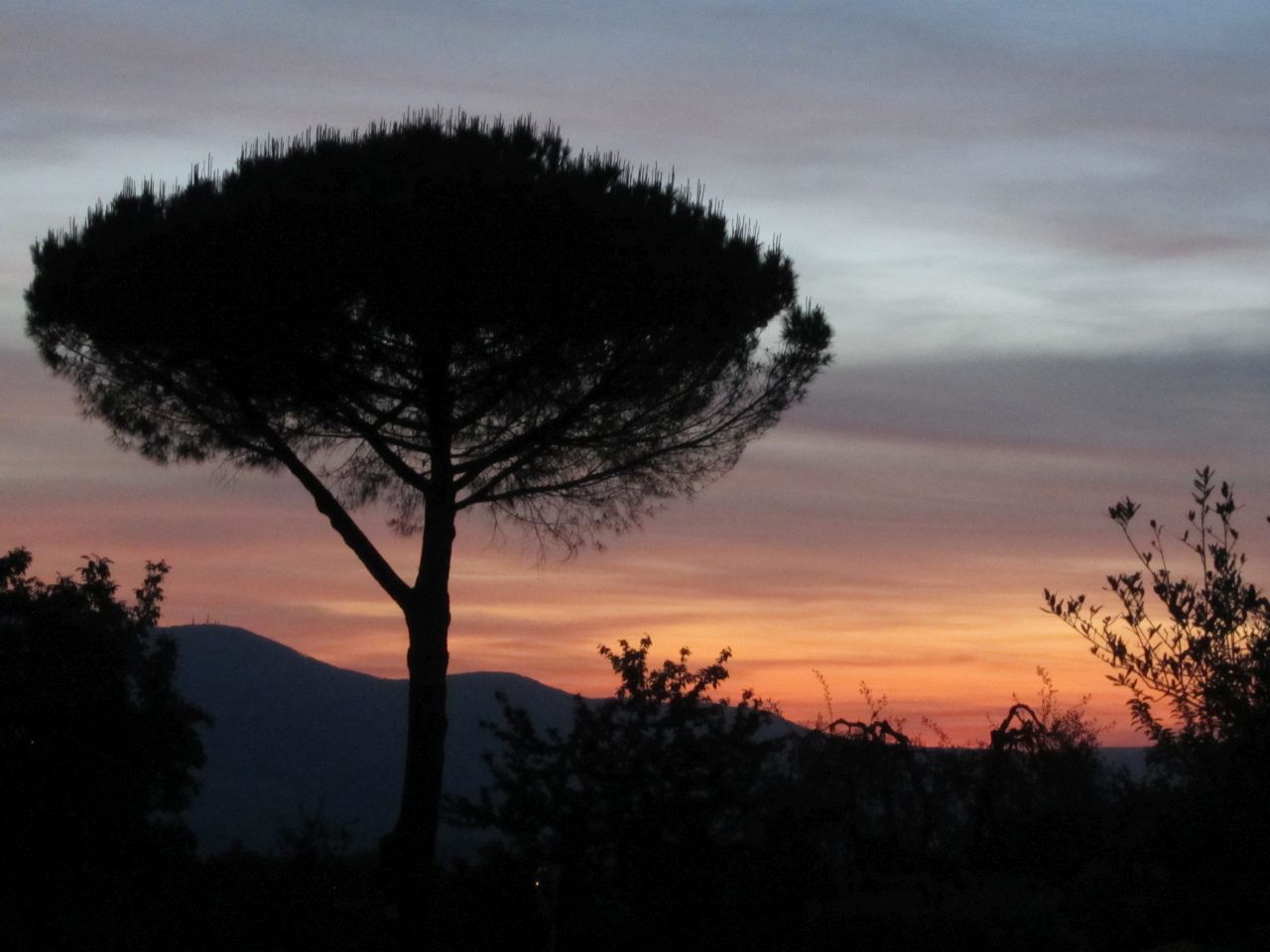 Als wir die Bar verlassen, beginnt es zu dämmern. Es folgt noch ein kleiner Anstieg und das Abendrot begleitet uns. Die ersten Lichter in den Dörfern flackern auf.