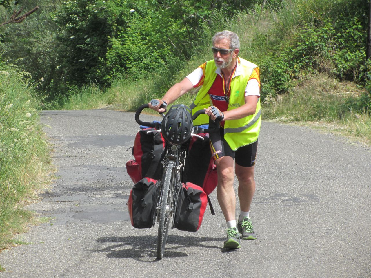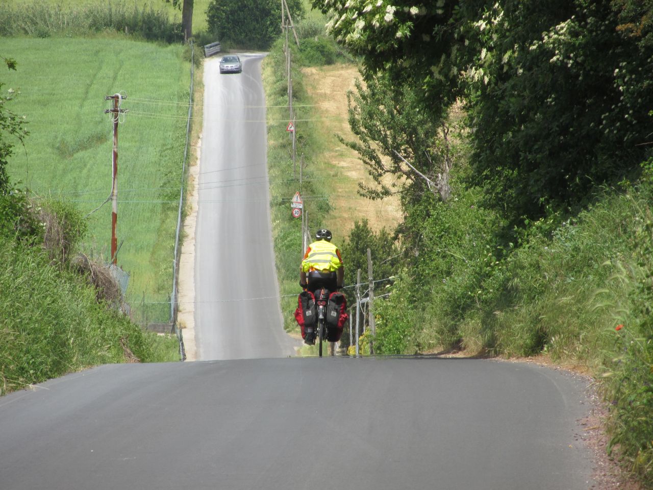 Aber hier geht es richtig zur Sache; der Berg mit 20 % Gefälle lässt Heinz schon recht gut aussehen.