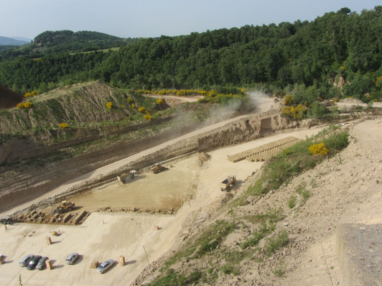 Auf dem Weg nach Sorano kommen wir an einem Steinbruch vorbei; oder muss man besser sagen Tuffsteingewinnungsbetrieb. Infolge des Vulkanismus ist hier der Tuffstein mit den Gasporen entstanden, der nun kommerziell abgebaut wird.