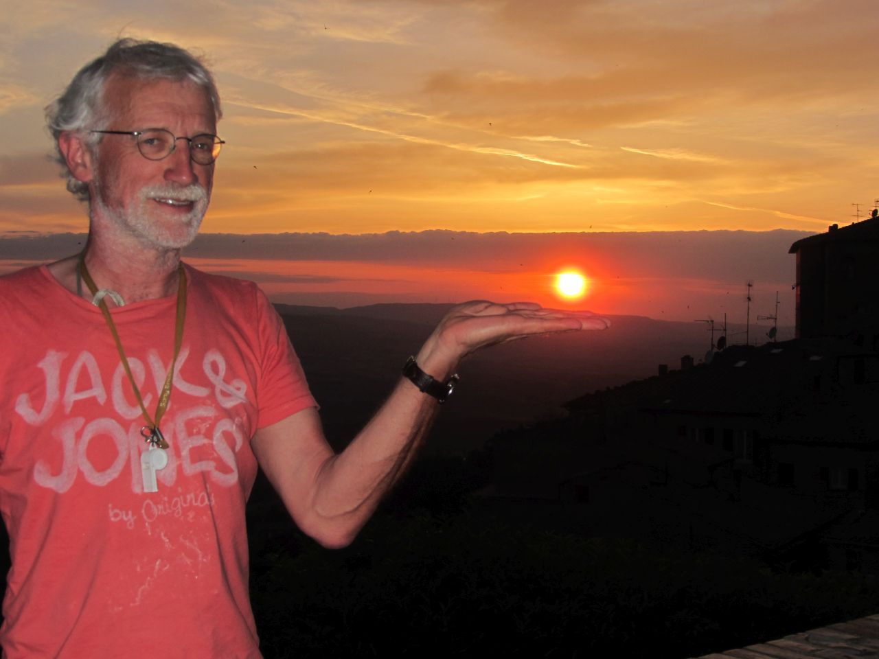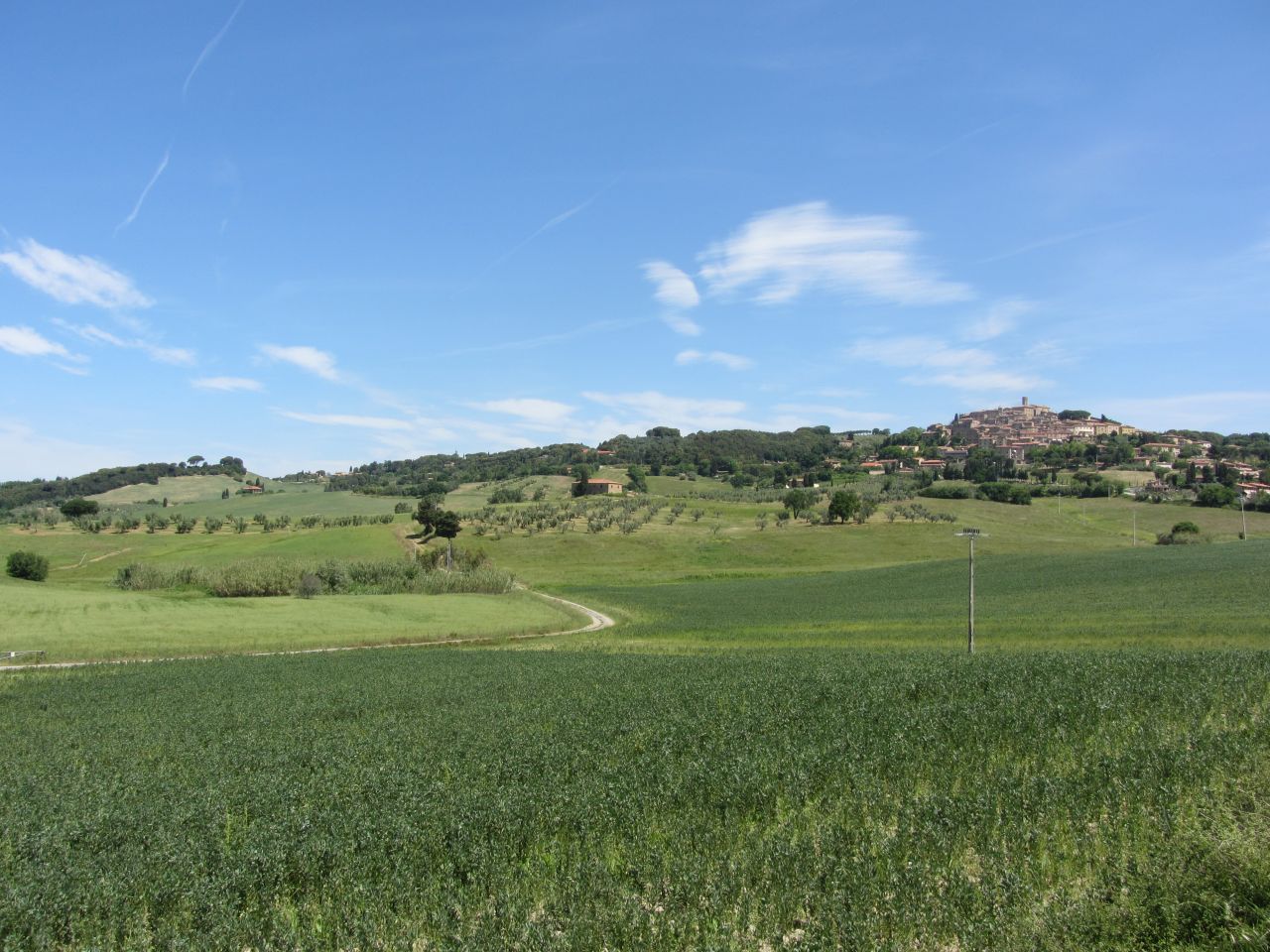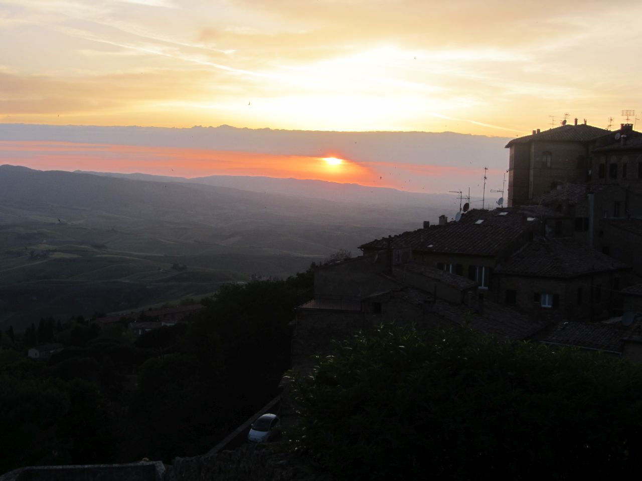 Hier nochmal ein Blick auf unser Hotel, das an der Porta Etruska liegt. Dort gibt es einen Platz, von dem man einen tollen Blickb auf das Umland und unsere Steigungspassage hat.