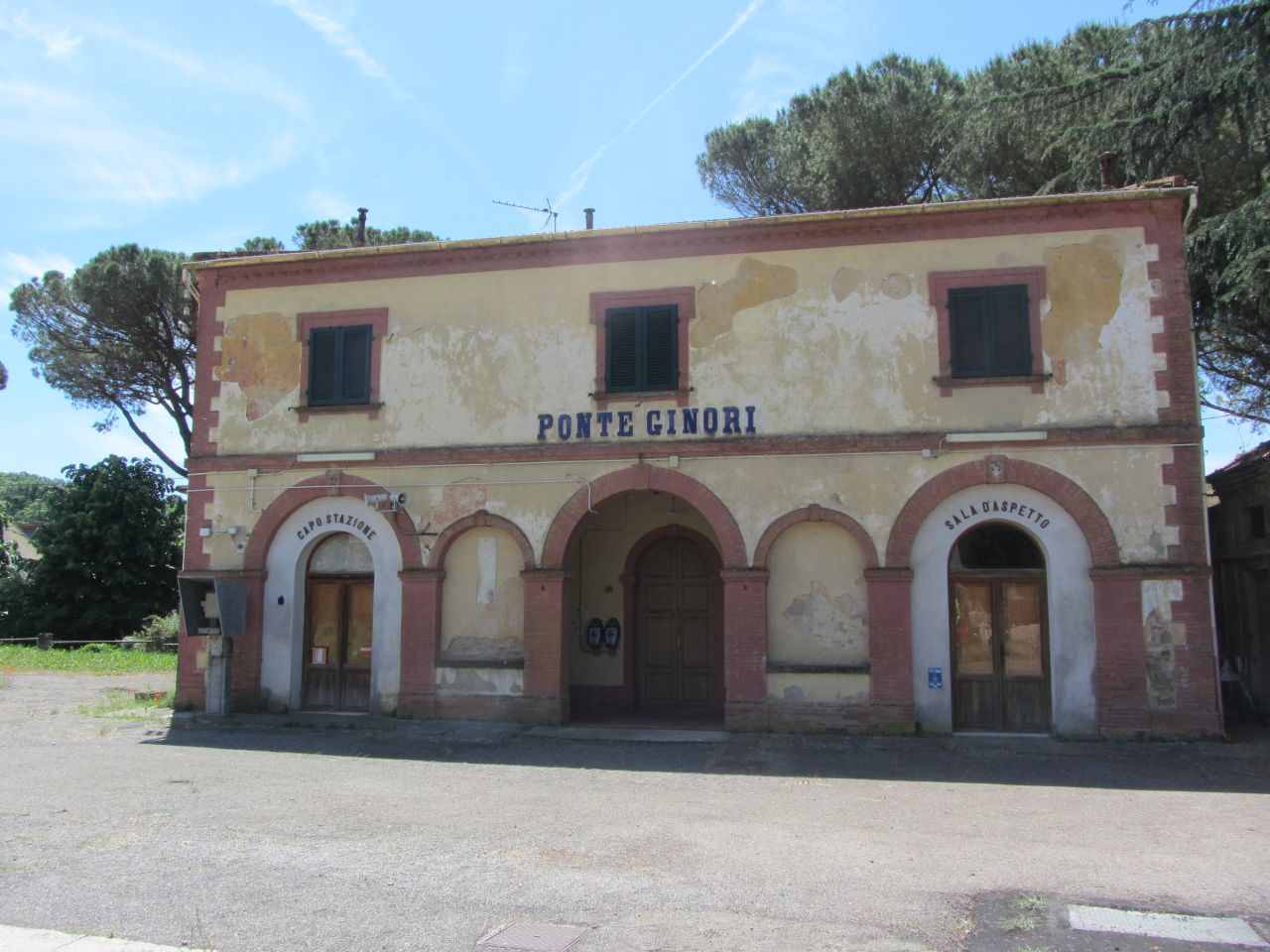 Unterwegs wurde uns von einer stillgelegten Bahntrasse nach Volterra berichtet, die wohl angeblich von Radfahrern genutzt werden kann. Ab Salina die Volterra ist die Bahnlinie stillgelegt und es ist ein unbefestigter Geröllweg übrig geblieben. Auf dem Bild ist ein altes Bahnhaus abgebildet. Der Weg ist mit unseren schwer bepackten Treckingrädern schwierig zu befahren. An dem beginnenden Anstieg nach Volterra geht es nicht mehr und wir wechseln wieder auf die Straße. Der Rest der Trasse ist wohl nur mit einem Mountainbike befahrbar.