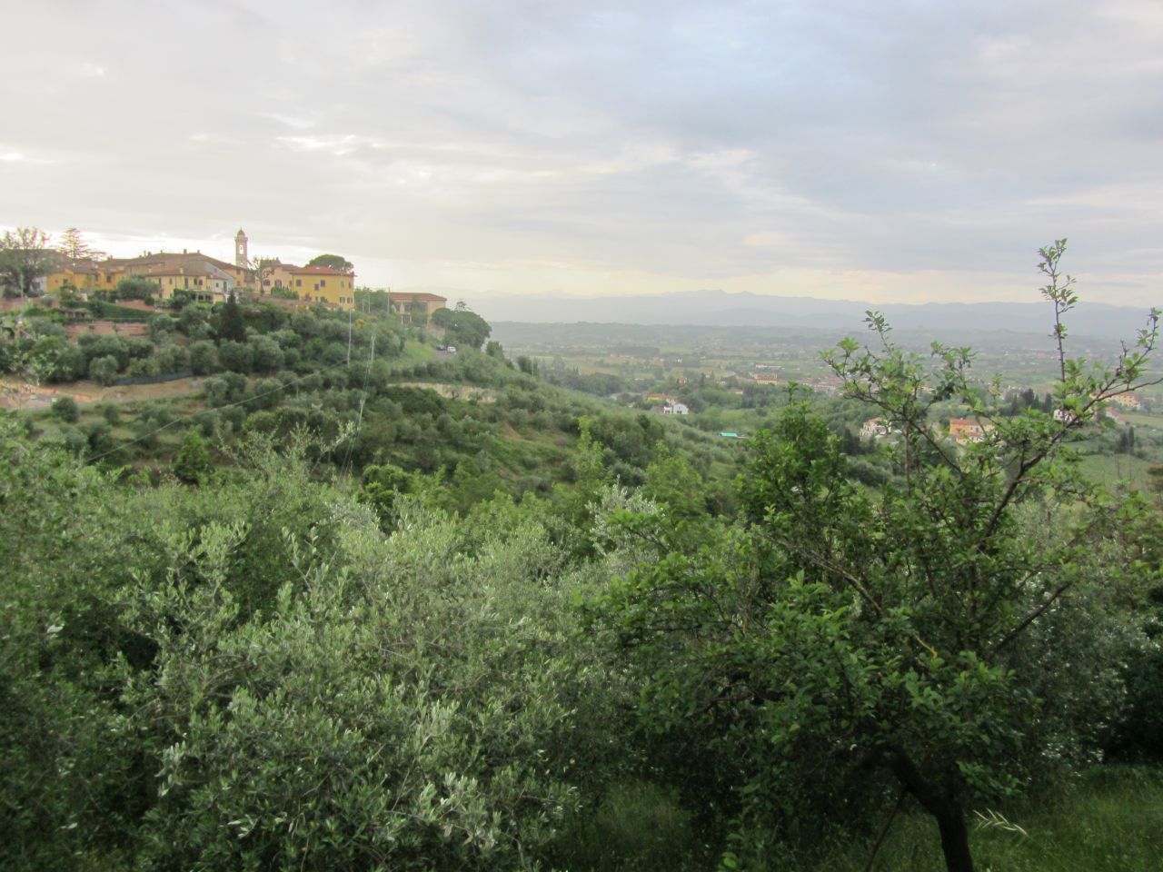 Auf den schmalen Straßen fahren wir ins nördliche Flachland. Hier stoßen wir auf das Problem, dass es außerhalb der touristischen Zentren wenig Übernachtungsmöglichkeiten gibt. An der Küste reiht sich ein Campingplatz neben dem anderen, und hier ist es schwierig, überhaupt ein Hotel zu finden. Wir überqueren den Arno und radeln durch die Altstadt von Fucecchio ohne eine Auberge zu finden.