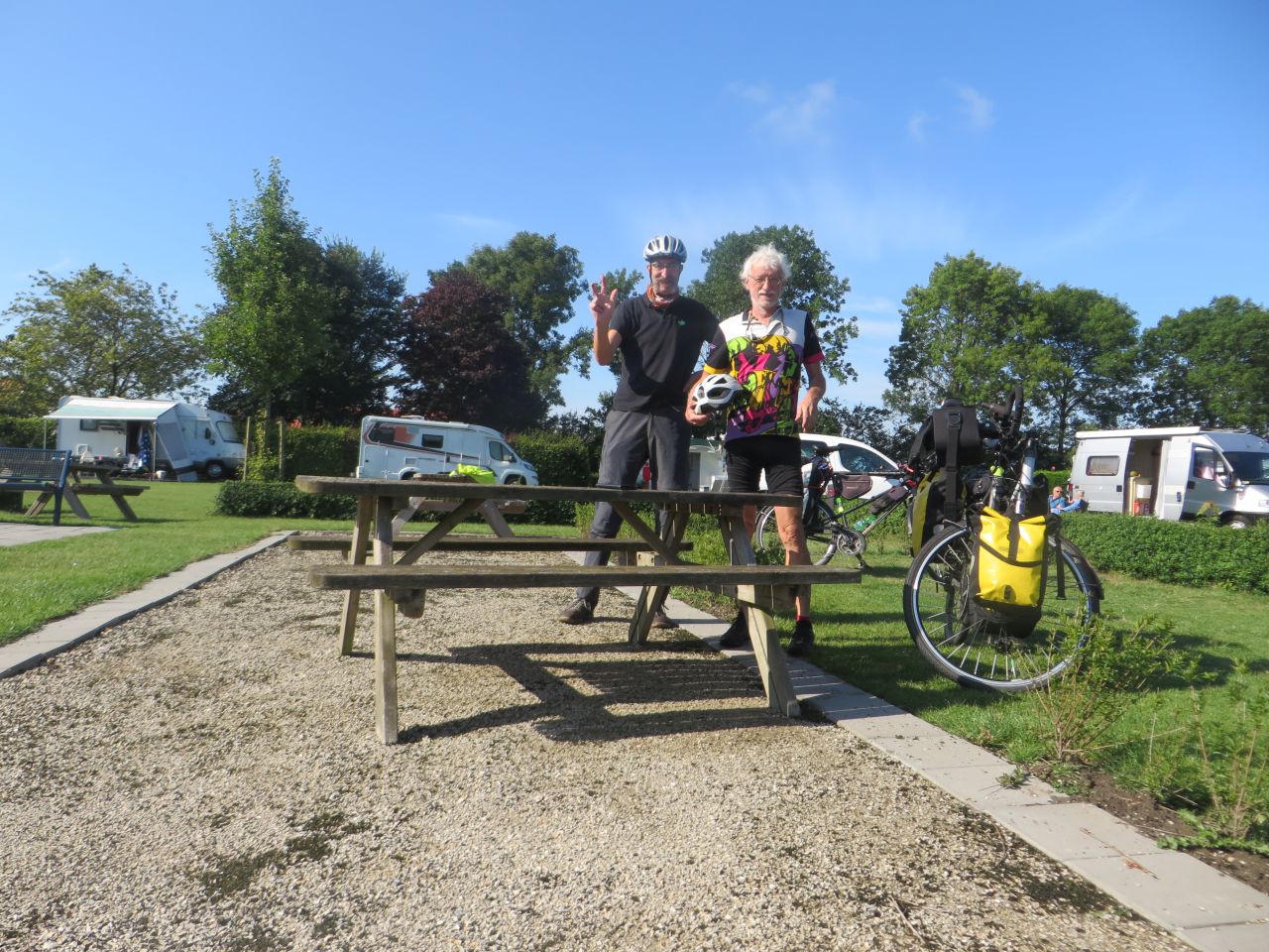 Am Morgen herrscht angenehmes warmes Wetter, so wie wir es uns gewünscht haben. Etwas Proviant fürs Frühstück haben wir noch und vom belgischen Nachbarn gibt es einen Kaffee gestiftet.