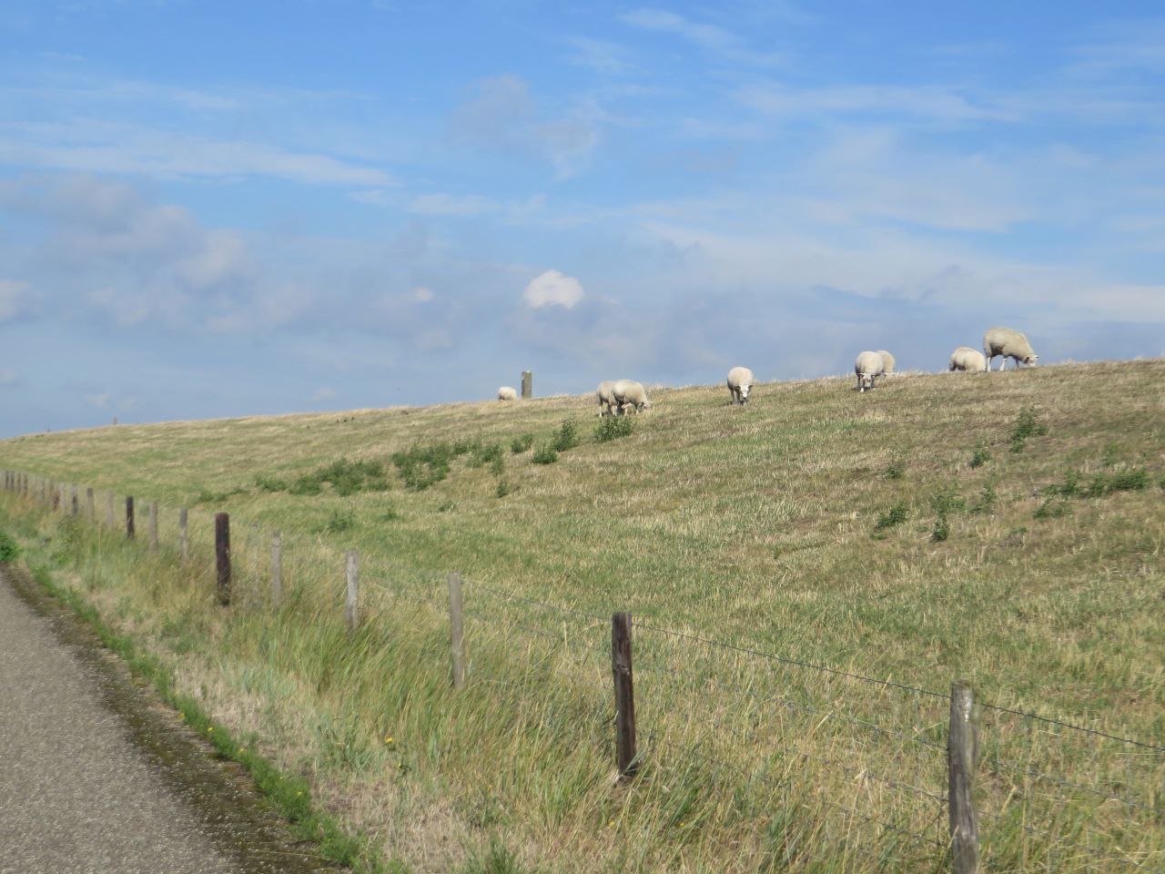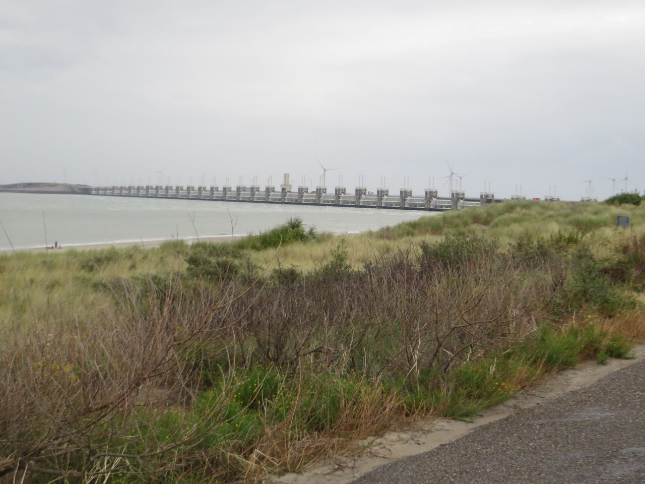 In Breezand erreichen wir dann die Nordsee und kommen dann zu dem Sperrwerk , das das Binnenland bei Sturmfluten schützen soll. Die Anlage ist mit einer breiten Brücke verbunden und ein Straßenteil ist nur für Fahrräder und Werksverkehr reserviert. Weiter geht es dann auf dem Nordseeradweg erst an der Küste entlang.