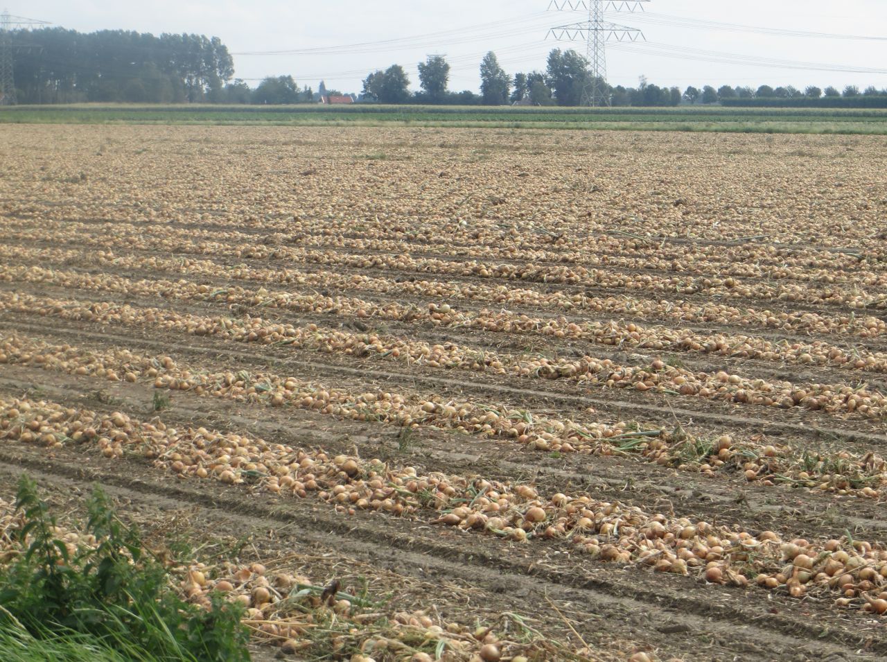 Die Landwirtschaft wird sehr intensiv betrieben; für unberührte Naturflächen bleibt kaum Raum. Riesige Zwiebelfelder gibt es hier, die Zwiebeln werden gerade geerntet.