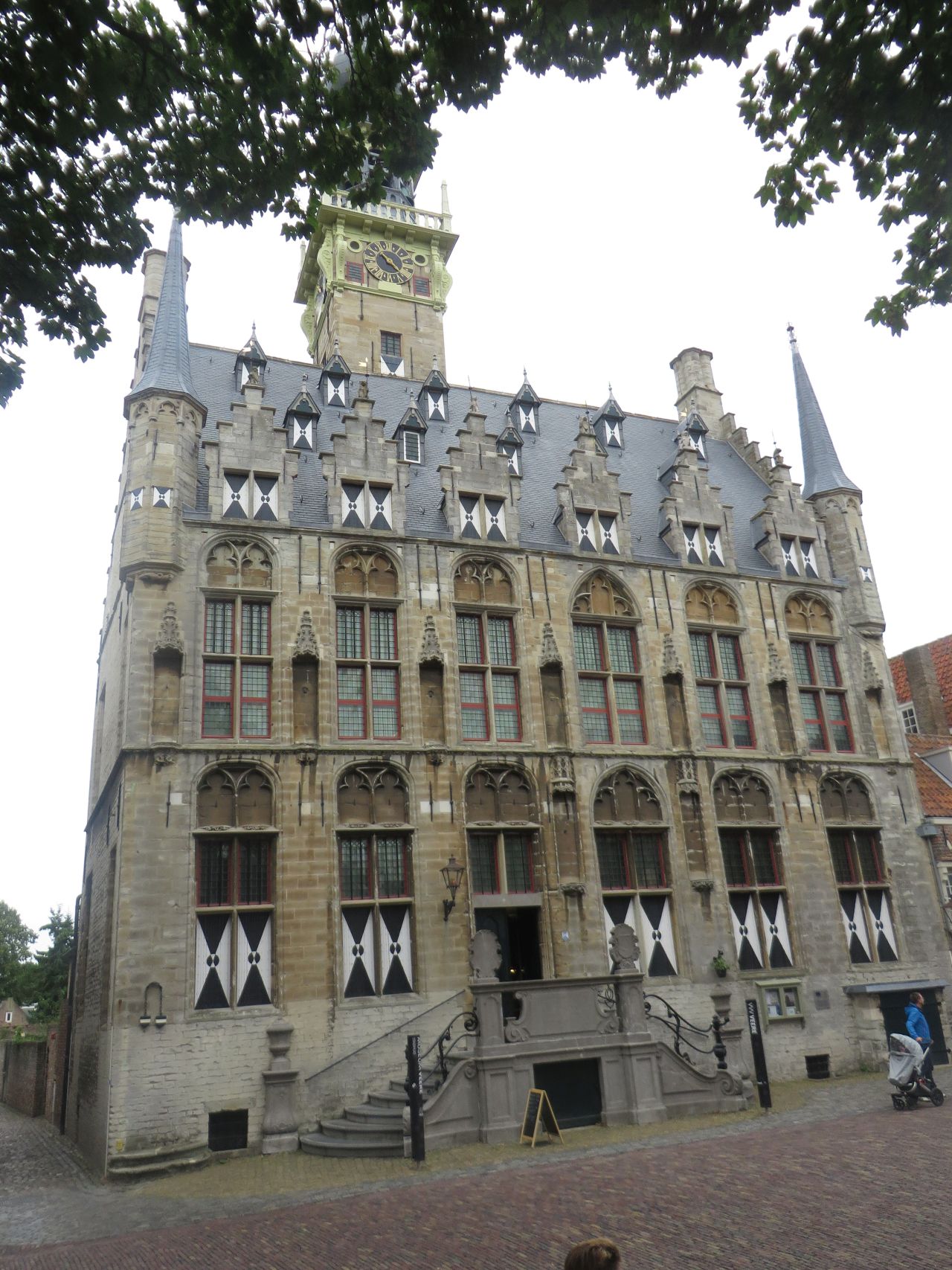 Es geht an Middelburg vorbei zum Door Walcheren Kanal, den wir auf dem Weg über einen Steg über das Schleusentor queren. Den Fernradweg LF 13 haben wir jetzt verlassen. Dann erreichen wir den historischen Ort Veere am gleichnamigen Meer. Viele Touristen drängeln sich durch die Gassen.