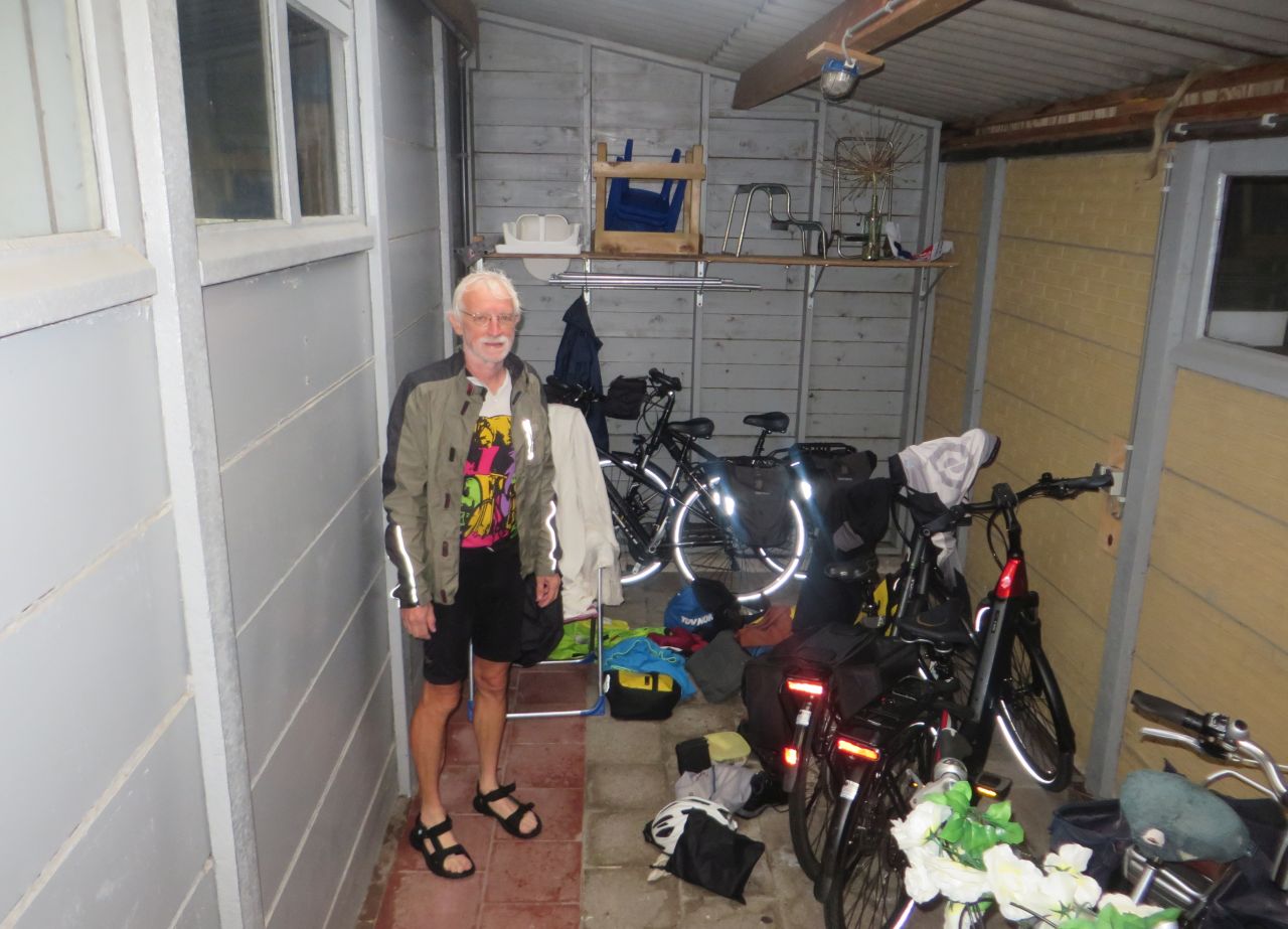 Am nächsten Morgen packen wir die nassen Klamotten in der Fahrradscheune zusammen.