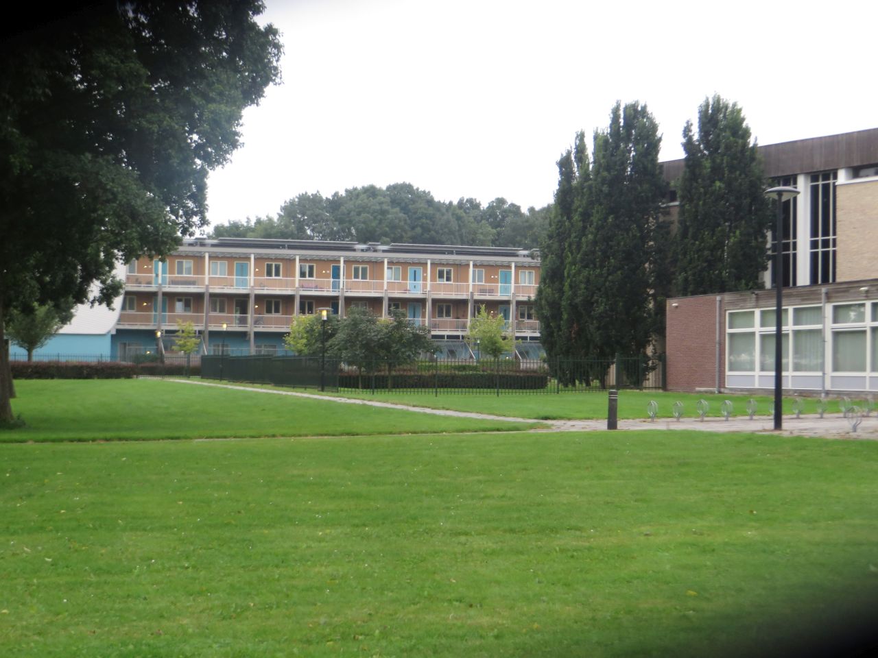 Wir radeln durch Dronten; und hier fallen einige futuristische Bauten auf. Alles so im 1960er-Jahre Stil.