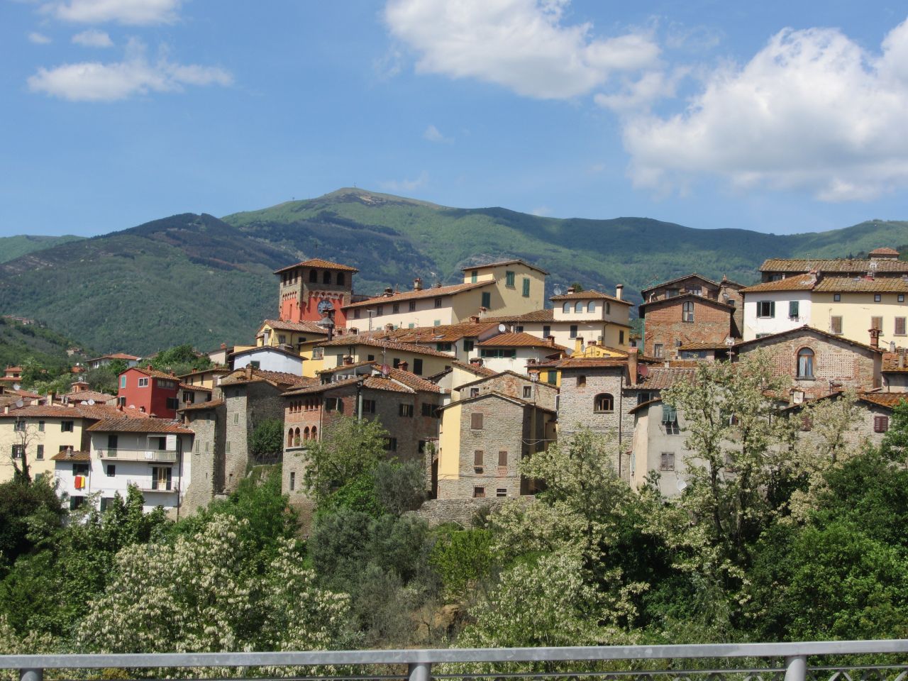Ein größere Ort ist Cascia und danach geht es auf einer kurvenreichen Strecke weiter Richtung nach Castel franco di sorpa. Neben der Straße sind viele Olivenhaine angeordnet; es gibt Weinfelder und zugehörige Winzereien. Olio und Olivia werden hier angeboten. So zieht sich unsere Straße an den höheren Bergzügen ohne größere Steigungen entlang.