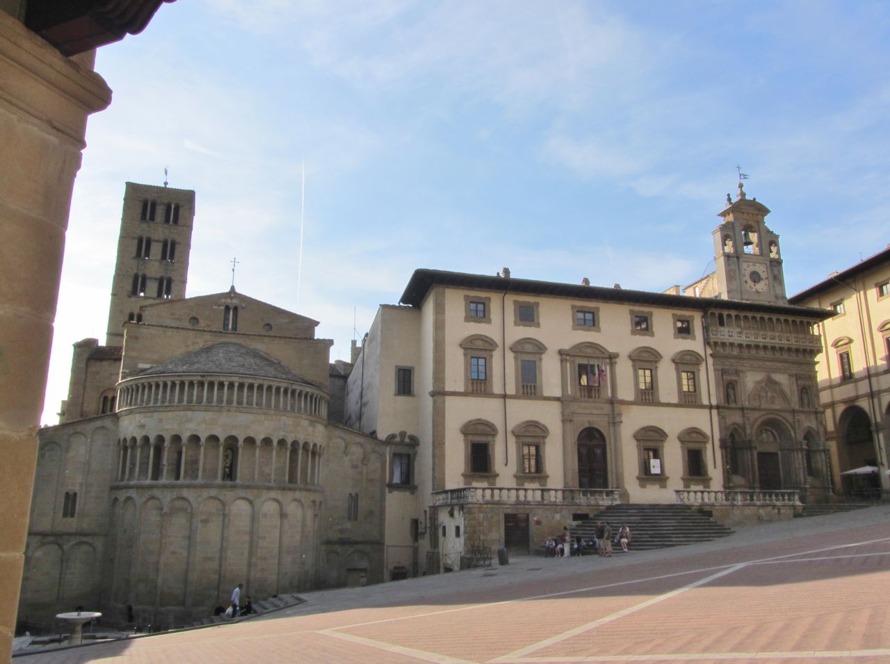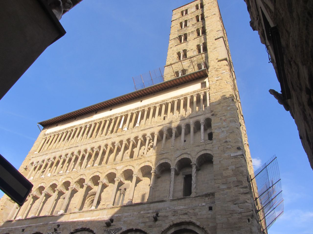 Wir rollen durch die Innenstadt und an der Piazza Grande kann man sich wieder in italienischer Architektur sattsehen. Besonders die Kirche Santa Maria della Pieve mit der schon verwitterten Fassade und den Bogenfassaden ist beeindruckend.