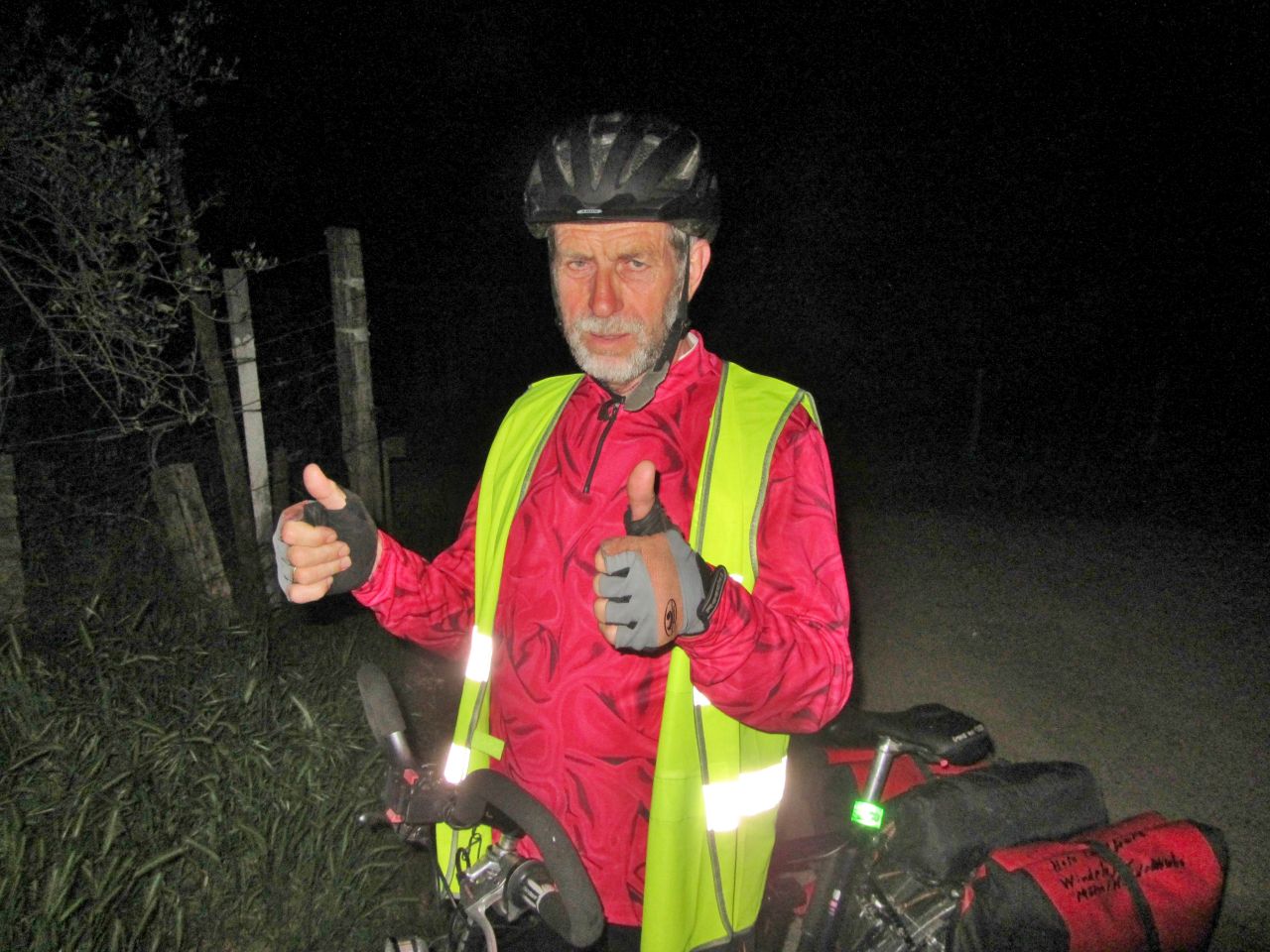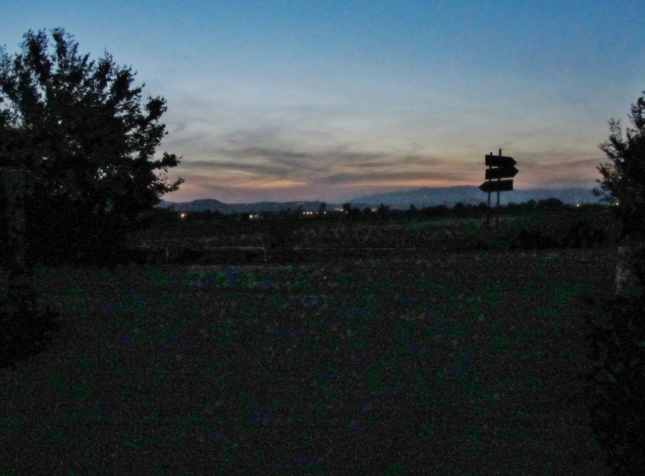 Wir biegen auf die SR 454 ab. Wir haben uns an das ebene Terrain gewöhnt; aber jetzt geht es auchn noch bergauf. Zum Glück sieht man nachts nicht die Steigung und man nimmt die geringere Geschwindigkeit beim Anstieg nicht so wahr. Psychologisch ist es einfacher nachts eine Steigung zu nehmen. Wir fahren durch Pozzuolo und dann geht es bergab nach Castiglione del Lago. Wir erreichen gegen 1:00 Uhr den Lago Trasimeno. Schließlich finden wir auch den Campingplatz aber keinen Zugang. Wir umrunden den Bereich ein paar Mal bis wir die unverschlossene Tür neben der Zufahrt entdecken.