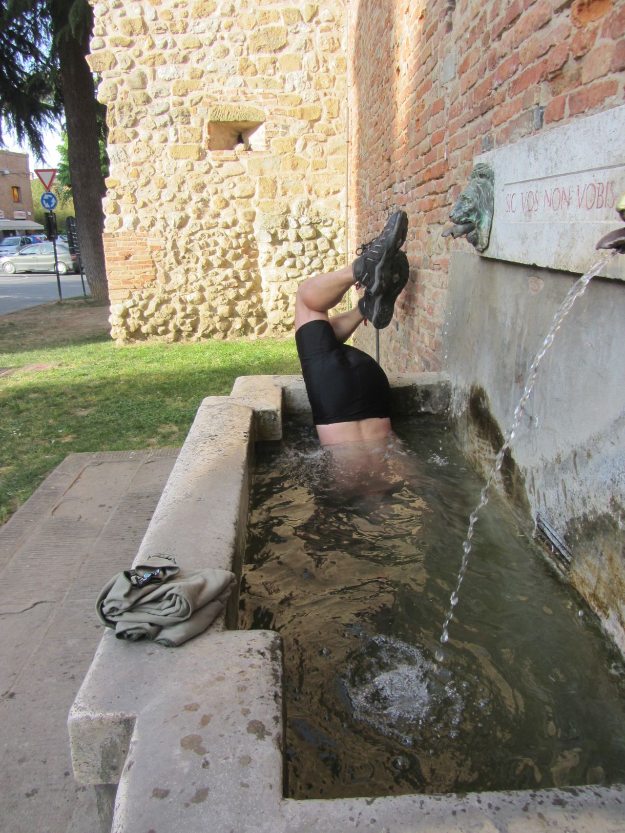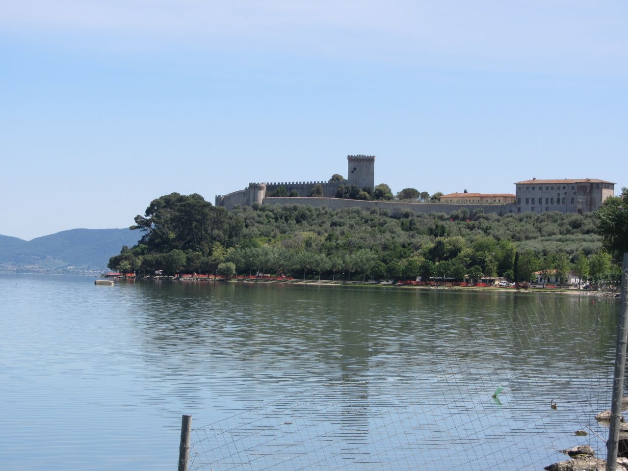 Nach der nächtlichen Ankunft wird uns erst am nächsten Tag gewahr, wie es überhaupt hier am Lage Transimeno aussieht. Wir blicken von dem Campingplatz auf einen großen See, der von Bergen umgeben ist. Wir stehen spät auf, wir sind ja spät in den Schlafsack gekommen. Wir baden natürlich, das Wasser hat eine angenehme Temperatur.
