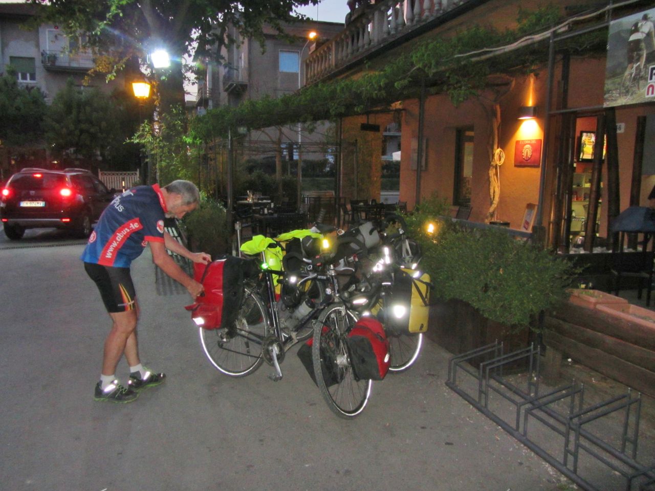 Bezüglich einer Unterkunft hatten wir schon beim Abendessen gegoogelt; an der Autobahnauffahrt von Fabro Scalo gibt es ein günstiges Hotel. Der Mitarbeiter an der Rezeption ist sehr nett und aufgeschlossen; die Räder können im Heizungskeller abgestellt werden.