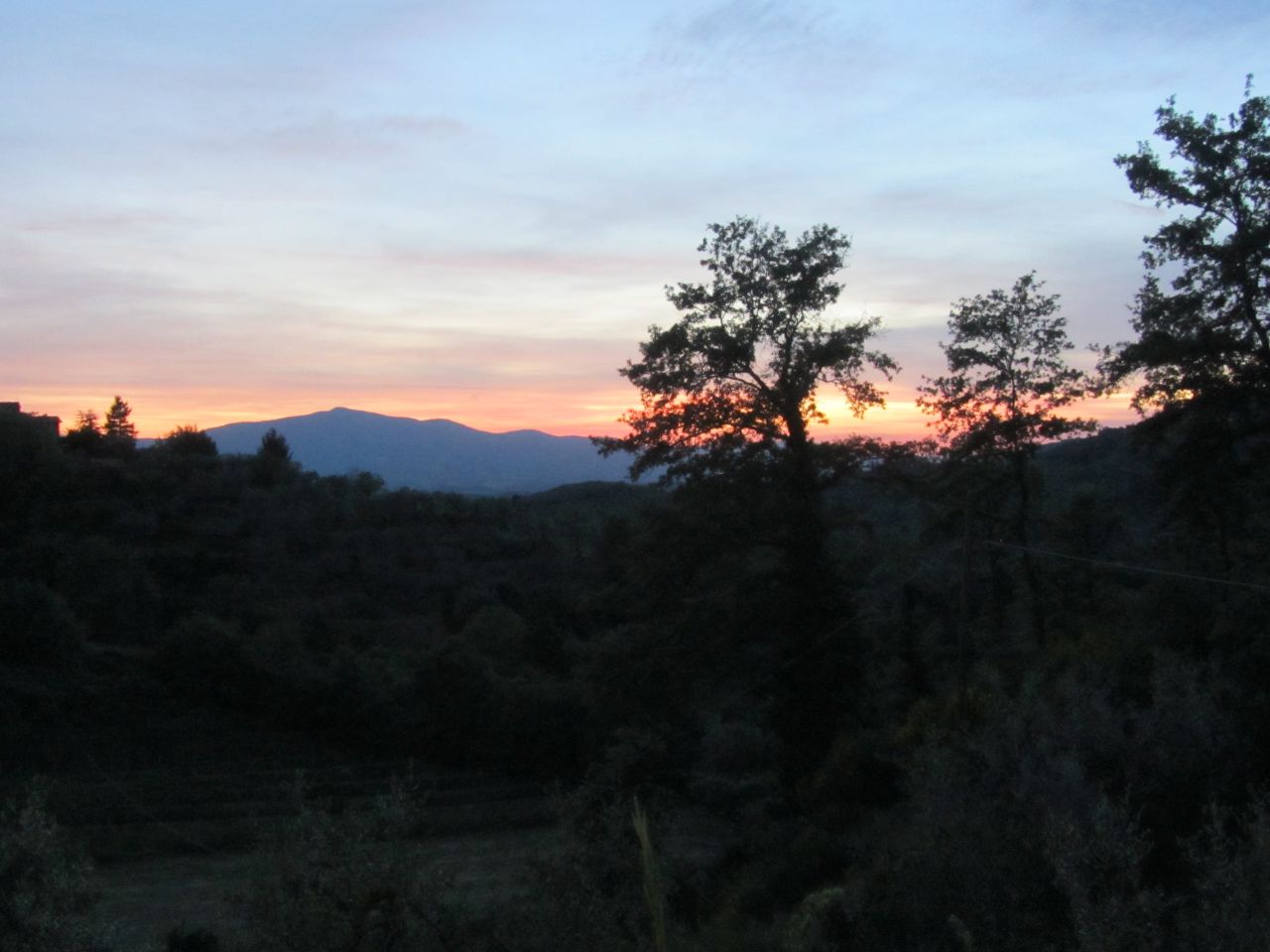 Als wir die Bar verlassen, beginnt es zu dämmern. Es folgt noch ein kleiner Anstieg und das Abendrot begleitet uns. Die ersten Lichter in den Dörfern flackern auf.