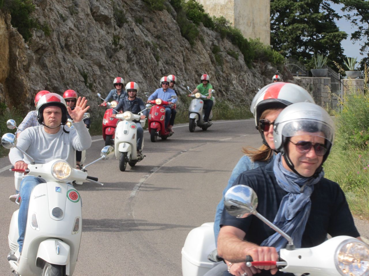 Dann treffen wir auf eine Vespa-Rollergruppe, die eine Halbinselerkundung durchführen; wie bei uns der Ausflug einer ADFC-Gruppe.