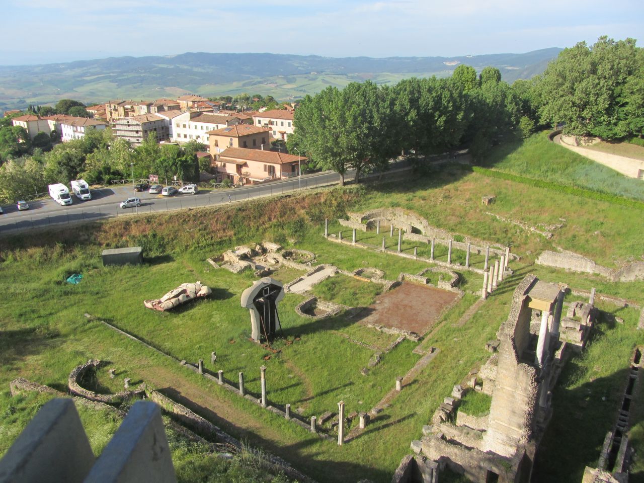Hier nochmal ein Blick auf unser Hotel, das an der Porta Etruska liegt. Dort gibt es einen Platz, von dem man einen tollen Blickb auf das Umland und unsere Steigungspassage hat.