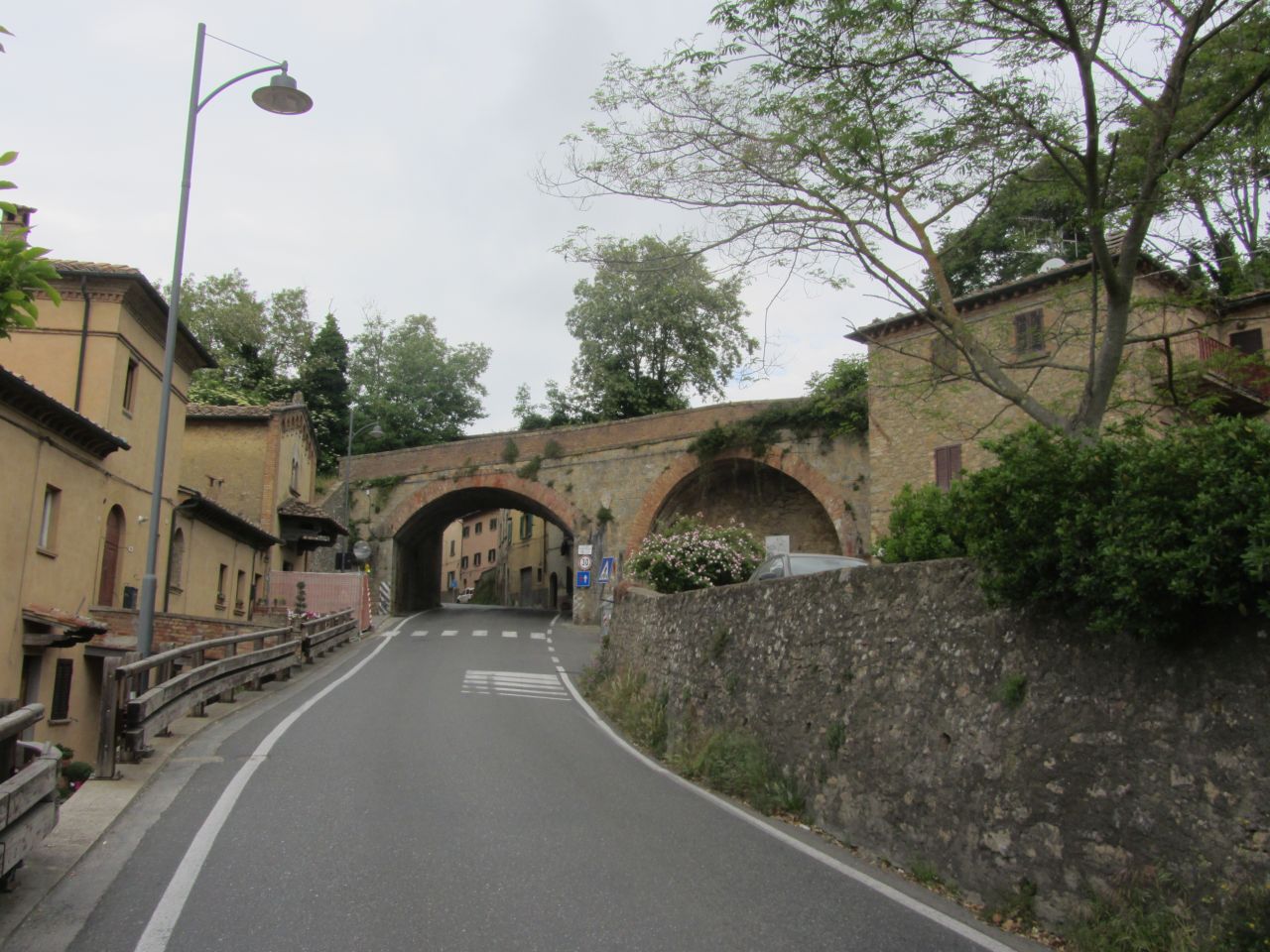 Dann erreichen wir nach heftigen Steigungen auf dem unbefestigten Weg endlich Gambassi Therme, und können wieder auf einer richtigen Straße weiterfahren.