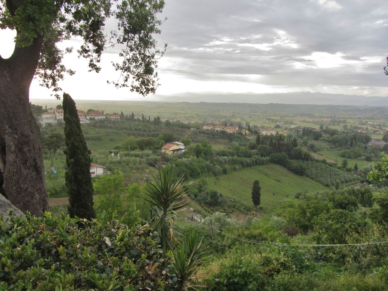 Auf den schmalen Straßen fahren wir ins nördliche Flachland. Hier stoßen wir auf das Problem, dass es außerhalb der touristischen Zentren wenig Übernachtungsmöglichkeiten gibt. An der Küste reiht sich ein Campingplatz neben dem anderen, und hier ist es schwierig, überhaupt ein Hotel zu finden. Wir überqueren den Arno und radeln durch die Altstadt von Fucecchio ohne eine Auberge zu finden.