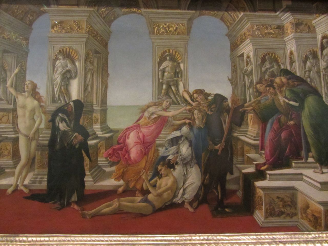 hier war Meister Sandro Botticelli am Werk mit "Die Verleumdung des Apelles". Hier sollen ganz viele Allegorien wie Betrug, Reue, Wahrheit, Dummheit und Anmaßung versteckt sein.