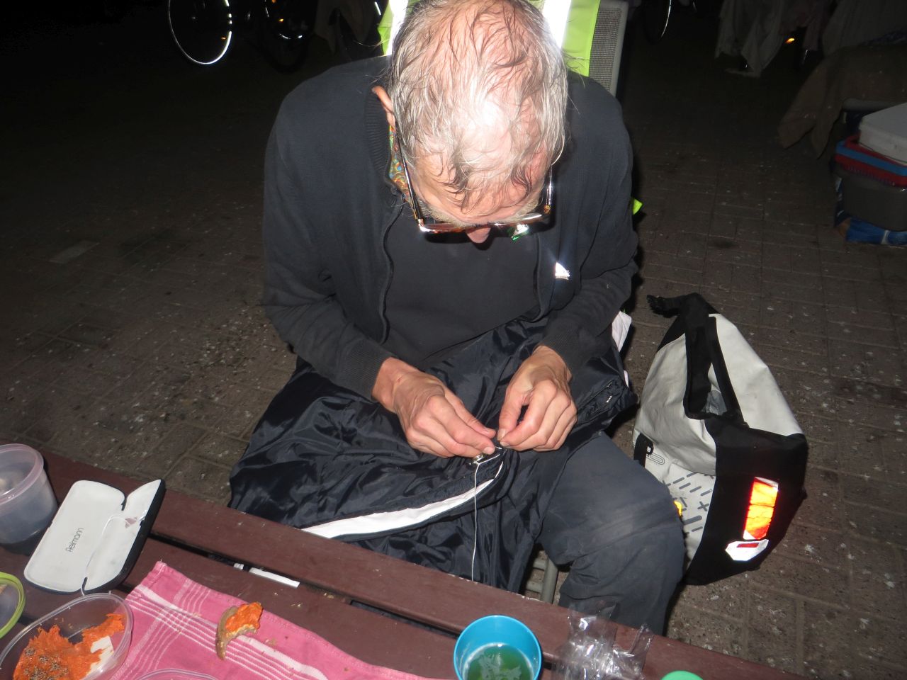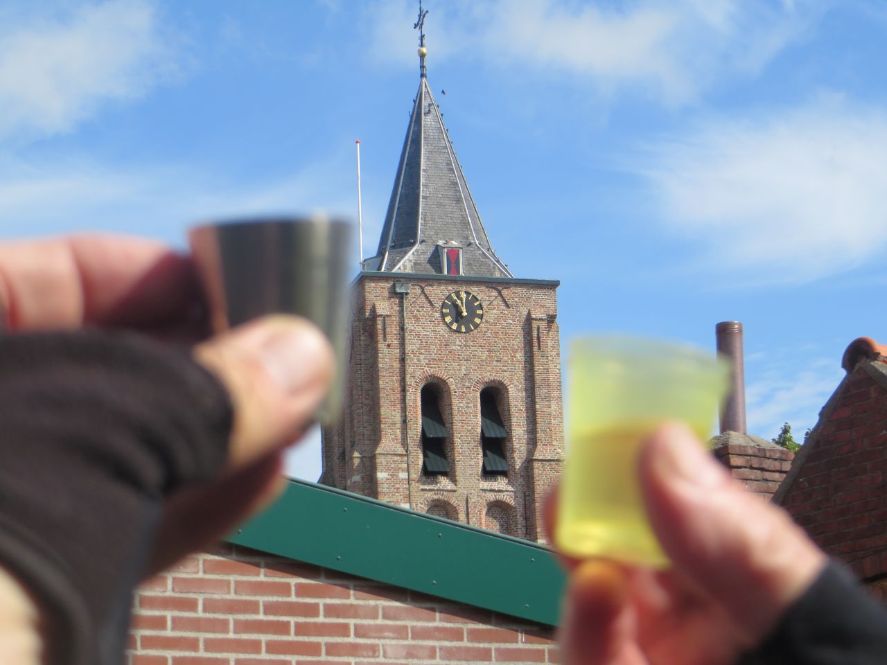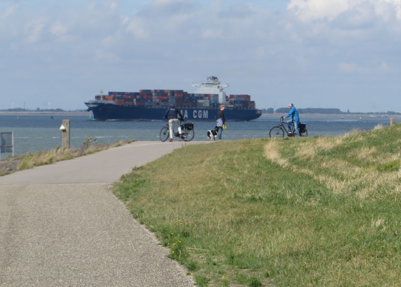 Zum Mittagszeit bekommt Werner Hunger; um ihn bei Laune zu halten muss ein Restaurant angelaufen werden. In s’Heerenhoek gibt es bei gutem Wetter noch Backfisch; aber es ziehen dann düstere Wolken auf. Der Wirt meinte, es würde bald regnen, aber es wären immer nur kurze Schauer zu erwarten. Die ersten Schauer waren dann auch nur kurz; Regenjacke an – Regenjacke aus..