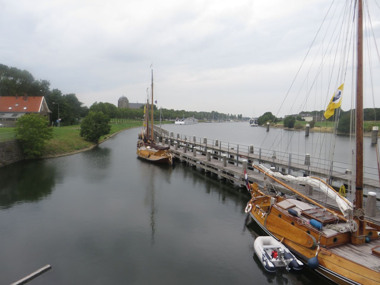Es geht an Middelburg vorbei zum Door Walcheren Kanal, den wir auf dem Weg über einen Steg über das Schleusentor queren. Den Fernradweg LF 13 haben wir jetzt verlassen. Dann erreichen wir den historischen Ort Veere am gleichnamigen Meer. Viele Touristen drängeln sich durch die Gassen.