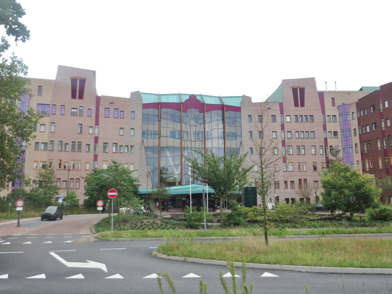 Auffällig sind die großen Neubaugebiete im Umfeld, die mit moderner und teilweise futuristischer Architektur bebaut sind, wie das hier abgebildete Krankenhaus. Verwendete Werkstoffe sind Glas, Ziegelstein und Holz