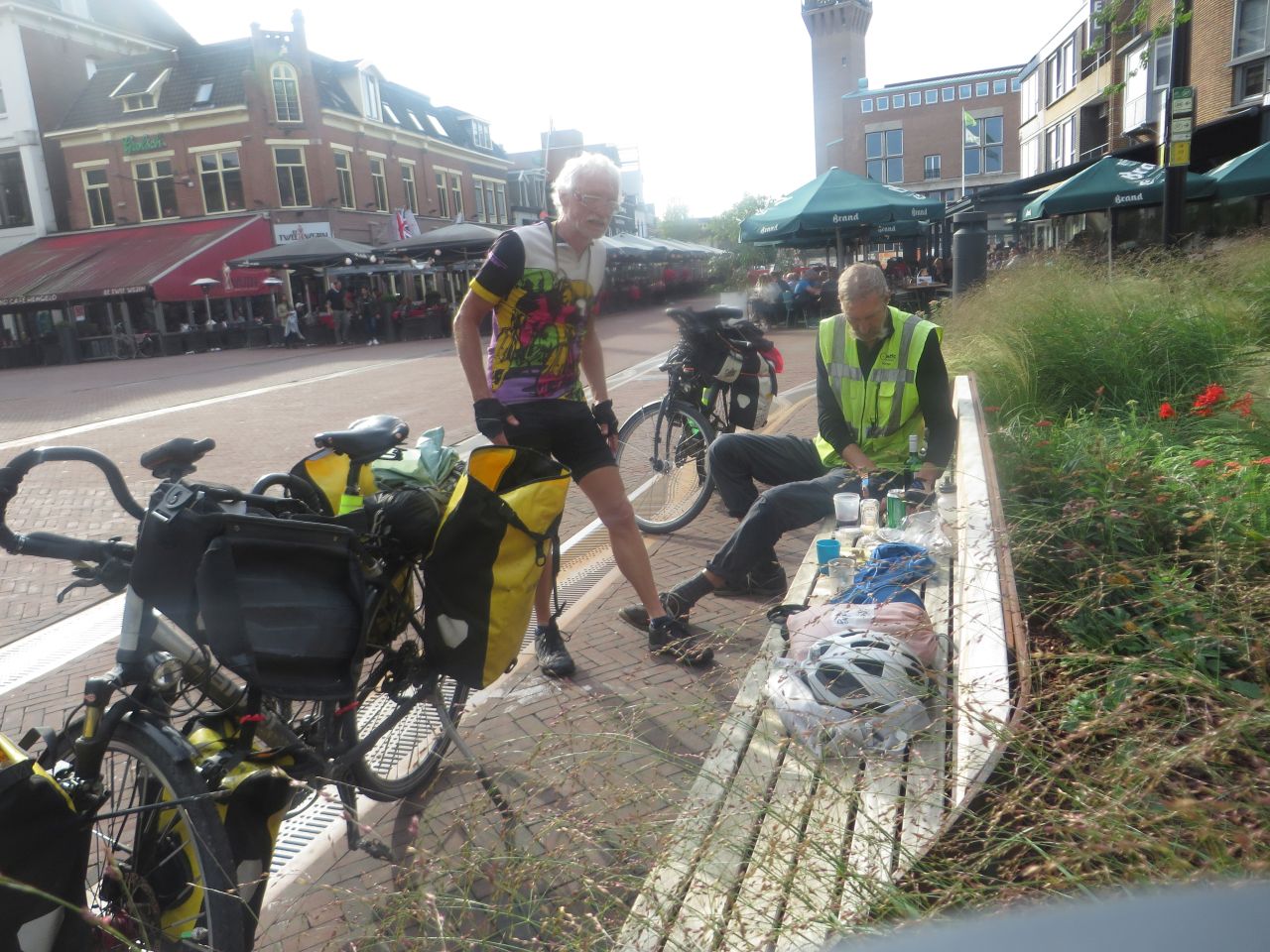 In der Stadtmitte von Hengelo stärken wir uns mit den Resten unseres Proviants. Im Laufe des Nachmittags hat sich das Wetter noch zum Guten gewendet und die Straßencafes sind gut besucht.