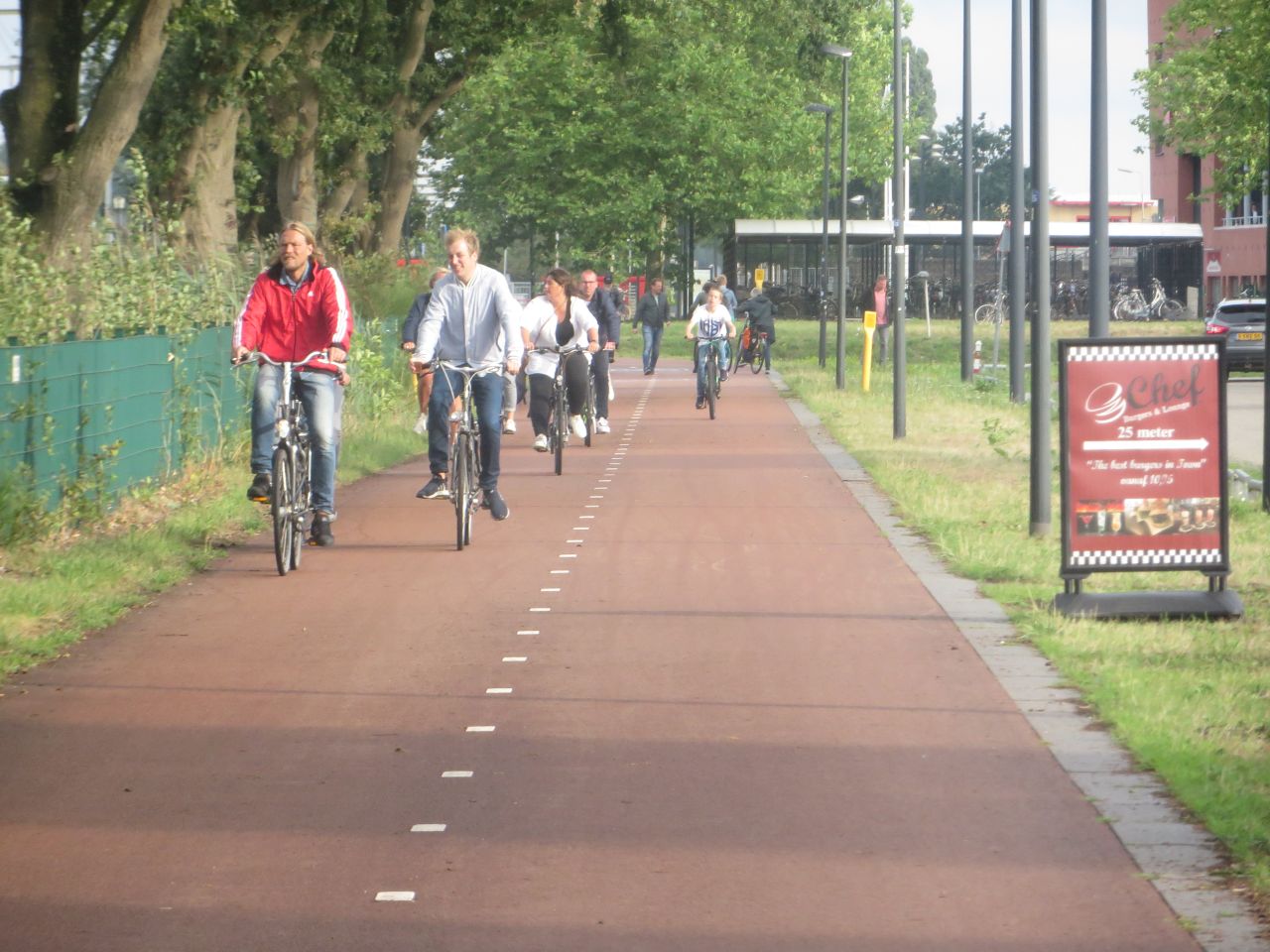 Er kann wirklich als Vorlage dienen: 4 m breit, markierte Mittelspur, roter Belag und fast kreuzungsfrei und frei von engen Kurven verläuft der Radweg parallel zur Eisenbahntrasse.